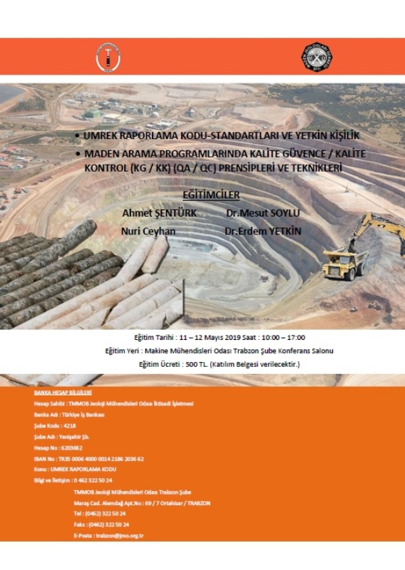 Umrek Raporlama Kodu-Standartları Ve Yetkin Kişilik Ve Maden Arama Programlarında Kalite Güvence / Kalite Kontrol (Kg / Kk) (Qa / Qc) Prensipleri Ve Teknikleri Eğitimleri