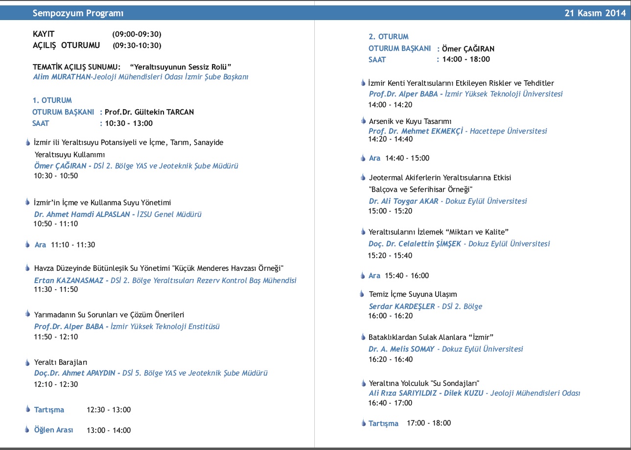 Odamız tarafından 21 Kasım 2014 tarihinde İzmir İli Yeraltı Su kaynakları Sempozyumu gerçekleştirilecektir.