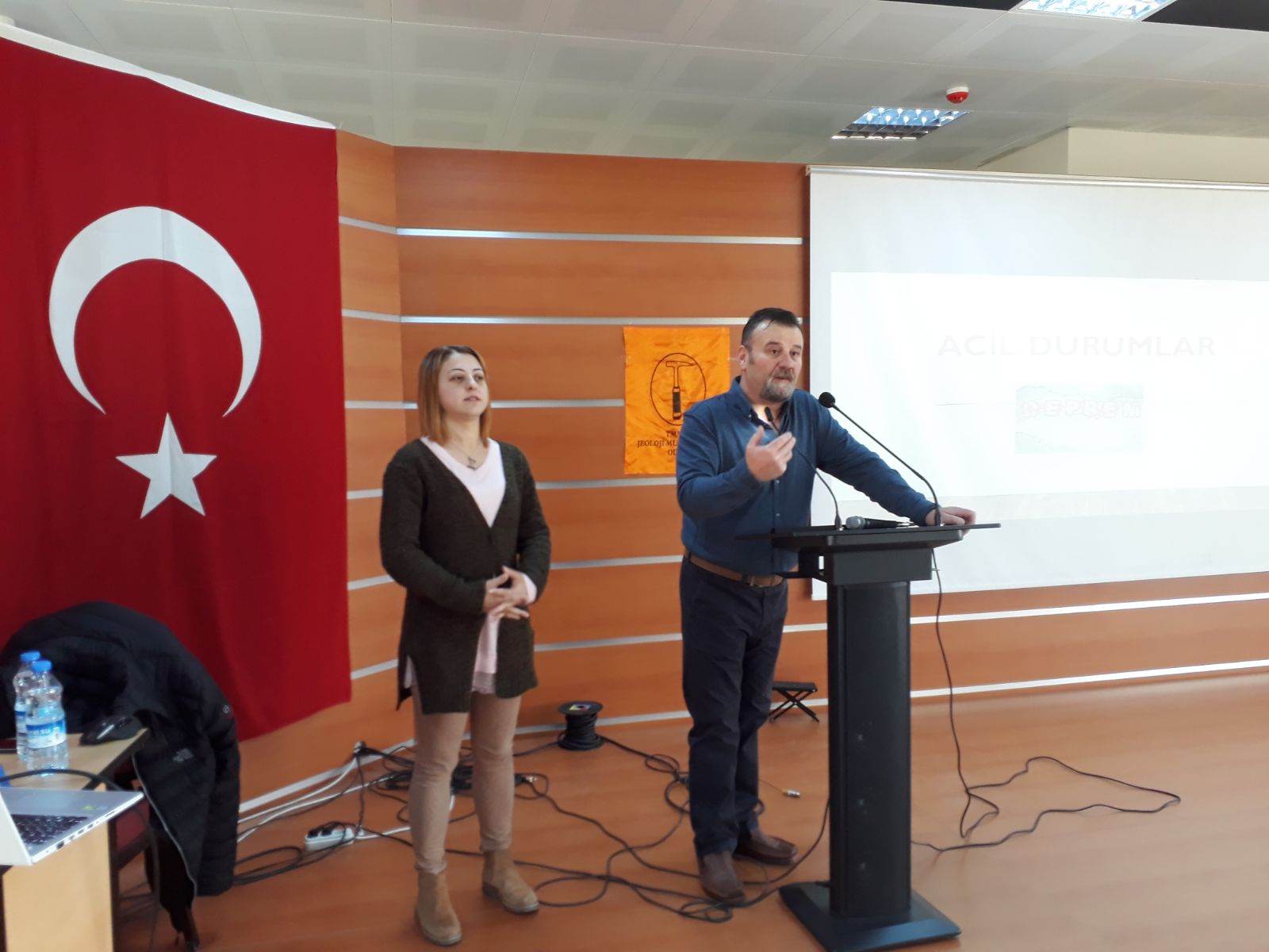 1-7 Mart Deprem Haftası Etkinlikleri kapsamında Sivas Fen Lisesi`nde , Cumhuriyet Üniversitesi Jeoloji Mühendisliği Bölümü Öğretim Üyesi Doç. Dr. B. Levent MESCİ ve Yönetim Kurulu Üyemiz Canan TİRYAKİ AYBULUT tarafından Deprem konulu sunumlar yapıldı.