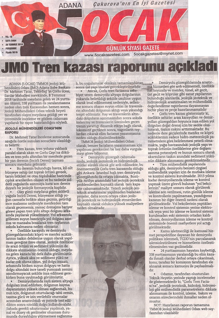 24.07.2018 tarihinde Genel Merkezimizce, Tekirdağ - Çorlu Tren kazası ile ilgili hazırlanan rapor tüm Türkiye`de olduğu gibi Şubemizce de basın açıklaması ile duyurulmuştur.