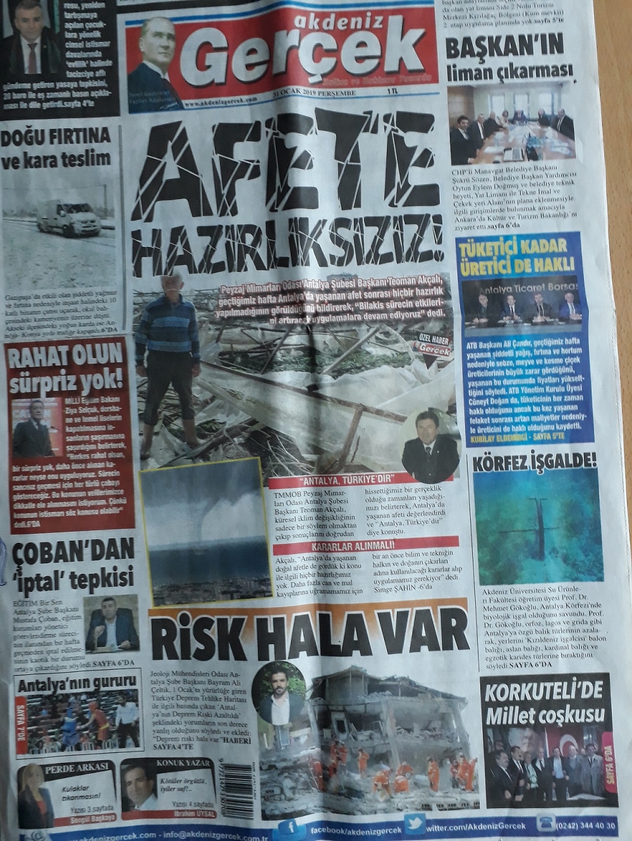 01.01.2019 tarihinde yürürlüğe giren “Türkiye Deprem Tehlike Haritası” ile ilgili olarak basında çeşitli değerlendirmeler yer almıştır. Bu harita ile ilgili olarak, Jeoloji Mühendisleri Odası Antalya Şubesi olarak yaptığımız ilk gözlemlerimiz sonucunda, hassas bir “Tehlike Haritası” hazırlanmış olduğu görülmüştür. Bu haritadan yola çıkarak Antalya ilimizin ve diğer bazı illerin “deprem riski azaltıldı” şeklinde bir yorum yapmak doğru olmayacaktır. Çünkü bu harita AFAD’ın kendi internet sayfasında ve yayımlamış oldukları raporlarda da belirtildiği gibi bir “Deprem Tehlike Haritası” olup kesinlikle “Deprem Risk Haritası” değildir. Bu haritayı Deprem Risk Haritası olarak isimlendirmek ve bu şekilde yorumlamak için, meydana gelen depremde her bir binada oluşacak hasarın, çevre üzerindeki etkinin, meydana gelecek ölümlerin ve ekonomik sonuçlarının da hesaba katılması gerekmektedir ki bu çok mümkün değildir. Günümüzde gelişmiş ülkelerin birçoğunda, yapılaşma sürecindeki zemin güvenlik katsayıları “Deprem Tehlike Haritaları” göz önüne alınarak belirlenmektedir ve Türkiye’de de bu yönde bir uygulamaya bu harita ile birlikte geçilmiştir.