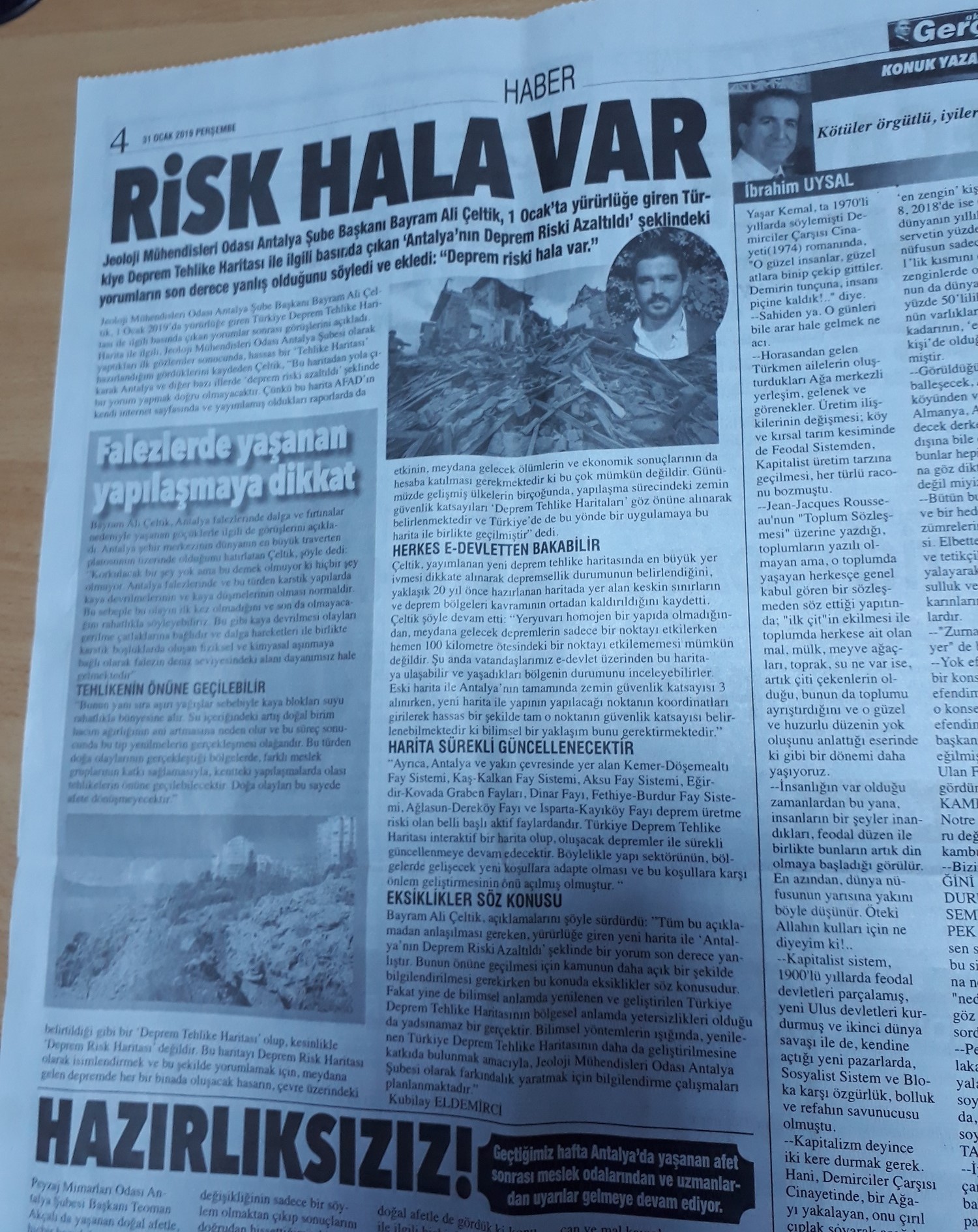 Tüm bu açıklamadan anlaşılması gereken, yürürlüğe giren yeni harita ile “Antalya’nın Deprem Riski Azaltıldı” şeklinde bir yorum son derece yanlıştır. Bunun önüne geçilmesi için kamunun daha açık bir şekilde bilgilendirilmesi gerekirken bu konuda eksiklikler söz konusudur. Fakat yine de bilimsel anlamda yenilenen ve geliştirilen Türkiye Deprem Tehlike Haritasının bölgesel anlamda yetersizlikleri olduğu da yadsınamaz bir gerçektir. Bilimsel yöntemlerin ışığında, yenilenen Türkiye Deprem Tehlike Haritasının daha da geliştirilmesine katkıda bulunmak amacıyla, Jeoloji Mühendisleri Odası Antalya Şubesi olarak farkındalık yaratmak için bilgilendirme çalışmaları planlanmaktadır.