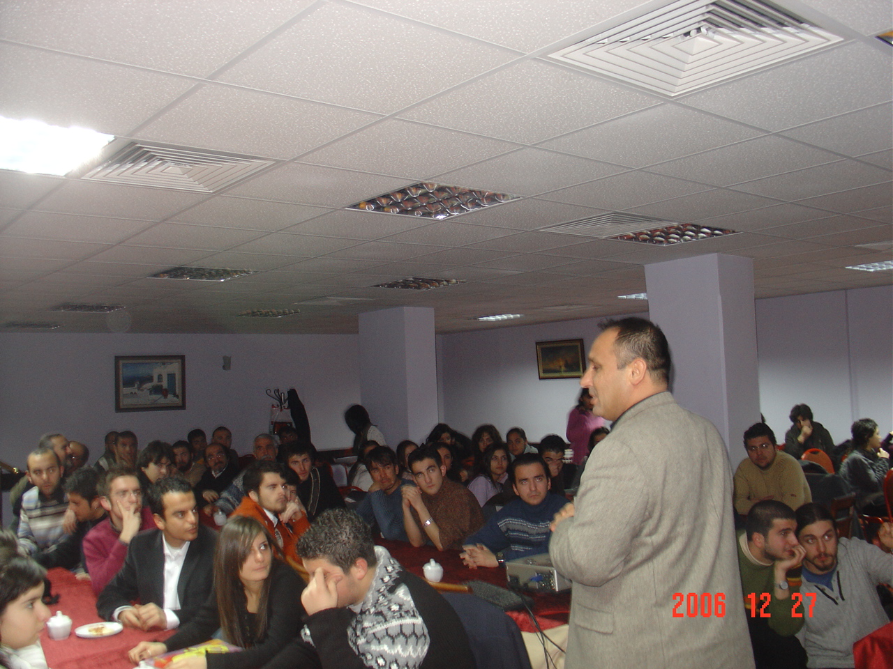 Odamızın yarınlara akan ırmağı olarak tanımladığımız, geleceğin jeoloji mühendisleri genç meslektaş adayları öğrencilerimizle 28 Aralık 2006 tarihinde Ankara‘da yapılan toplantıya Ankara Üniversitesi, Hacettepe ve ODTÜ den 150 ye yakın JEOGENÇ katıldı. Yeni yıla girerken oda ve JEOGENÇ çalışma programının tanıtımı yapılan toplantının açılışını Oda başkanımız İsmet CENGİZ‘ yaptı. Daha sonra Ankara JEOGENÇ komisyon üyelerinden Ertaç DERİNCELİLER‘in JEOGENÇ sunumu ve slayt gösterimi yapıldığı toplantıda, çalışma programı kapsamında planlana 2007 etkinliklerine yönelik bilgi verildi. Staj komisyonundan yaz kamplarına, burs yönetmeliğinden 2. öğrenci kurultayına kadar her konuda bilgilendirme yapıldı. Bölümlerine ilk tercihleri sonunda giren meslektaş adaylarımıza odamız tarafından çekiç armağan edildikten sonra kokteylde bir araya gelen JEOGENÇ‘ ler sohbetlerini derinleştirdiler birbirleriyle tanıştılar ve var olan dostluklarını pekiştirdiler. Gece ODTÜ JEOGENÇ‘TEN Erdem ŞİMŞEK‘in‘in bağlama dinletisiyle son buldu...