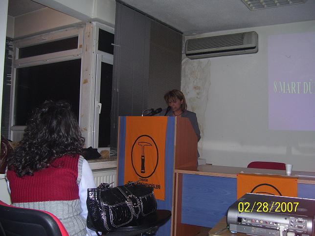 8 Mart Dünya Emekçi Kadınlar Günü etkinliğimiz, odamız eğitim ve kültür merkezinde 46 kişinin katılımıyla "Toplumsal Cinsiyet, Pozitif Ayrımcılık ve Kadının Rolü" paneliyle başlamıştır. Panel, Oda Başkanımız İsmet Cengiz‘in açılış konuşmasının ardından, Oda yönetim kurulu üyemiz Serap Durmaz‘ın 8 Mart‘ın tarihsel gelişimini anlatmasıyla başlamıştır. Ardından Oda Kadın Komisyonu üyelerimizden Ahu Ünal ve Zübeyde Arslan‘ın konuşmalarıyla devam etmiştir. Etkinlik yaklaşık 2 saat sürmüş daha sonra lokalimizde düzenlenen canlı müzikli yemeğimizin ardından etkinliğimiz sona ermiştir.