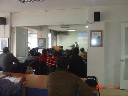 14-16 mart 2007 tarihleri arasında yapılan kursa 45 meslektaşımız katıldı. Kurs açılışında konuşan oda başkanımız ismet cengiz, madencilik sektörünün en öenmli ayağını oluşturan maden aramacılığın önemine dikkat çekerek ulusal madencilik politikalrımızn aramacılık üzerine oturmasına dikkat çekti. 3 gün süren kursta,