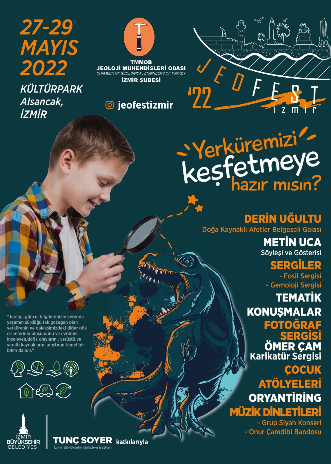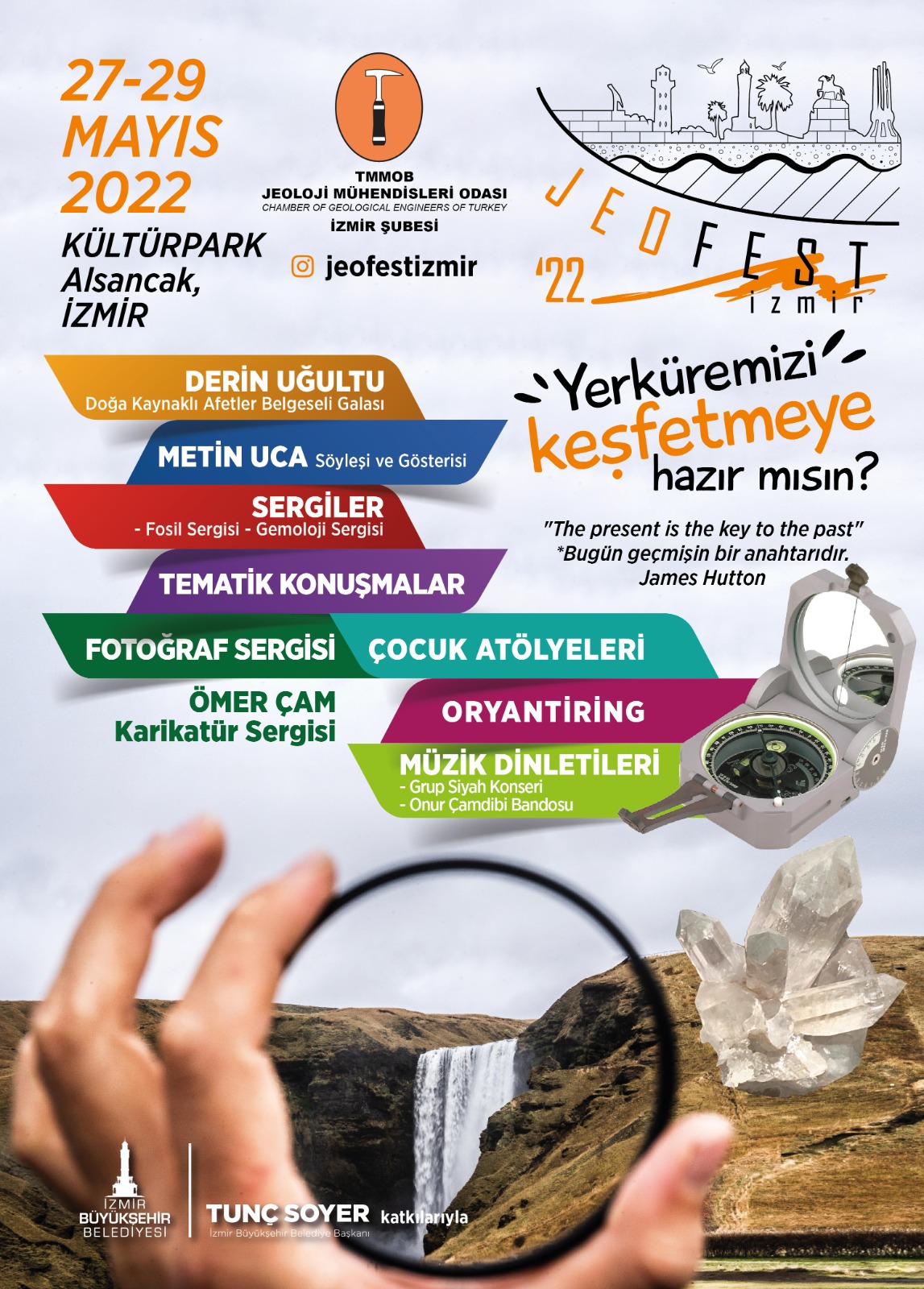 TMMOB Jeoloji Mühendisleri Odası İzmir Şubesi tarafından; 27-29 Mayıs 2022 tarihleri arasında düzenlenecek olan; Türkiye`nin ilk Jeoloji festivalinde sizleri yanımızda görmekten mutluluk duyarız.