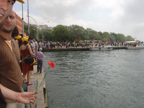 Saat 11:00 de Uğur Mumcu meydanında Odamız Yönetim Kurulu Yazman Üyesi Dündar ÇAĞLAN tarafından yapılan basın açıklaması ile başlayan program Soner-Öner ve Güneş için sahil boyunca oluşan insan zincirinin denize karanfil bırakması ile devam etti.