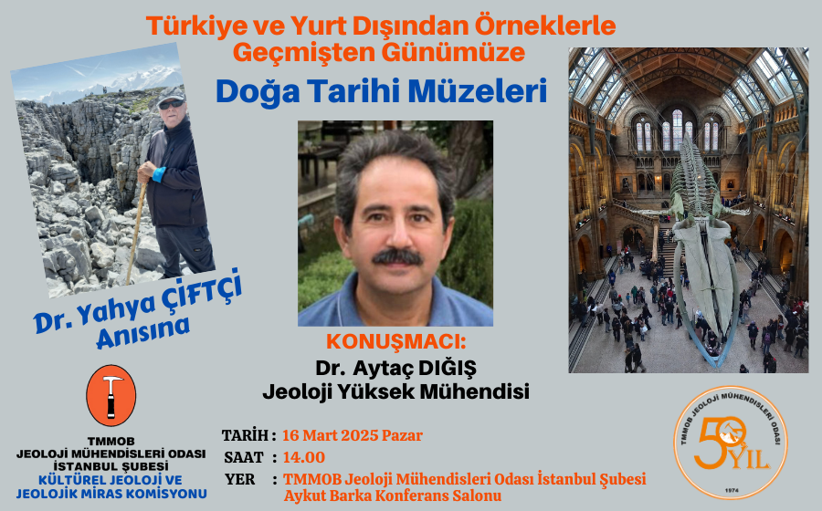 Söyleşi, TMMOB Jeoloji Mühendisleri Odası İstanbul Şubesi Kültürel Jeoloji ve Jeolojik Miras Komisyonu tarafından, 15 Ocak 2025 tarihinde yitirdiğimiz Değerli Üyemiz Dr. Yahya ÇİFTÇİ anısına yapılacaktır.