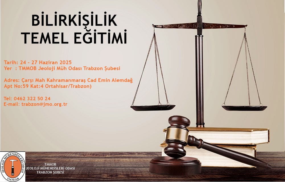 Bilirkişilik Temel Eğitimi Trabzon`da, 24-27 Haziran 2025 tarihleri arasında, TMMOB Jeoloji Mühendisleri Odası Trabzon Şubesi`nde gerçekleştirilecektir.