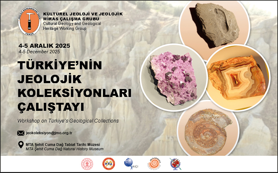 Türkiye’nin Jeolojik Koleksiyonları Çalıştayı 4-5 Aralık 2025’te TMMOB Jeoloji Mühendisleri Odası Kültürel Jeoloji ve Jeolojik Miras Çalışma Grubu, Kültür ve Turizm Bakanlığı Kültür Varlıkları ve Müzeler Genel Müdürlüğü, MTA Şehit Cuma Dağ Tabiat Tarihi Müze Müdürlüğü, Türkiye Ulusal Jeoloji Bilimleri Birliği (TUJBB), Jeolojik Mirası Koruma Derneği (JEMİRKO) ve Yerbilimleri Eğitimi Çalışma Grubu (YEÇG) ortaklığı ile Ankara’da MTA’da düzenlenecektir.