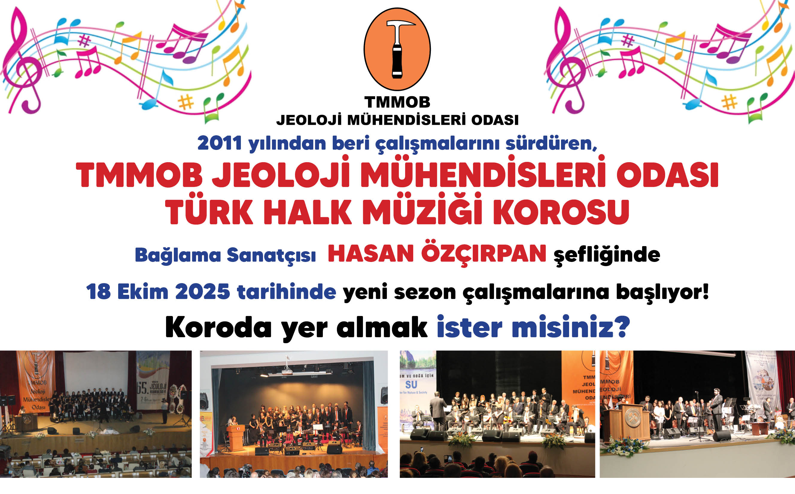 TMMOB Jeoloji Mühendisleri Odası Türk Halk Müziği Korosu, Bağlama Sanatçısı Hasan Özçırpan şefliğinde yeni sezon çalışmalarına başlayacaktır.