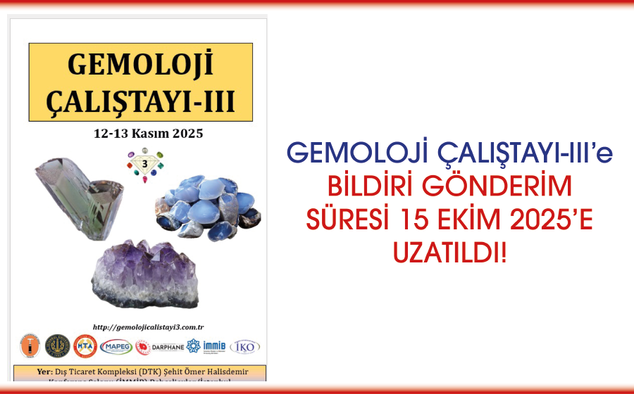 Gemoloji Çalıştayı-3,  TMMOB Jeoloji Mühendisleri Odası İstanbul Şubesi, İstanbul Üniversitesi-Cerrahpaşa Jeoloji Mühendisliği Bölümü, Maden Tetkik ve Arama Genel Müdürlüğü (MTA), Maden ve Petrol İşleri Genel Müdürlüğü (MAPEG), Darphane ve Damga Matbaası Genel Müdürlüğü, İstanbul Maden ve Metaller İhracatçı Birlikleri (İMMİB), Mücevher İhracatçıları Birliği ve İstanbul Kuyumcular Odası (İKO) paydaşlığında,  12-13 Kasım 2025 tarihleri arasında,  İMMİB-Dış Ticaret Kompleksi (DTK) Şehit Ömer Halisdemir Konferans Salonu’nda,  İstanbul’da  düzenlenecektir.