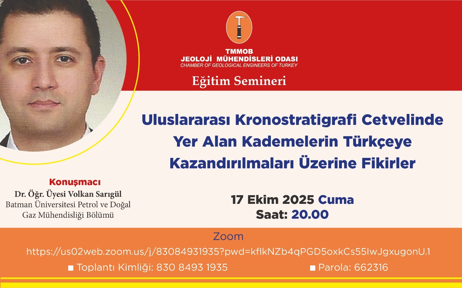 Dr. Öğr. Üyesi Volkan Sarıgül tarafında 17 Ekim 2025 Cuma Günü Saat 20.00’de ‘’Uluslararası Kronostrafigrafi Cetvelinde Yer Alan Kademelerin Türkçeye Kazandırılmaları Üzerine Fikirler’’ başlıklı çevrimiçi eğitim düzenlenecektir.