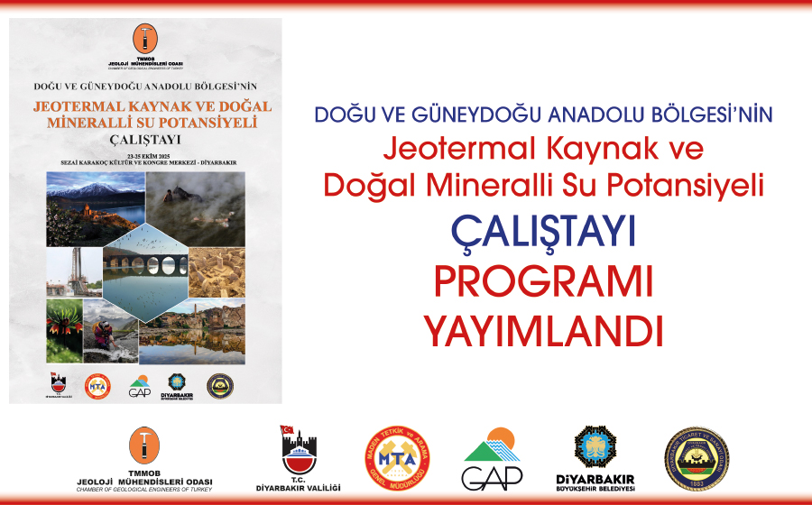 23-25 Ekim 2025 tarihleri arasında düzenlenecek olan “Doğu ve Güneydoğu Anadolu Bölgesinin Jeotermal Kaynak ve Doğal Mineralli Su Potansiyeli Çalıştayı programı yayımlandı.