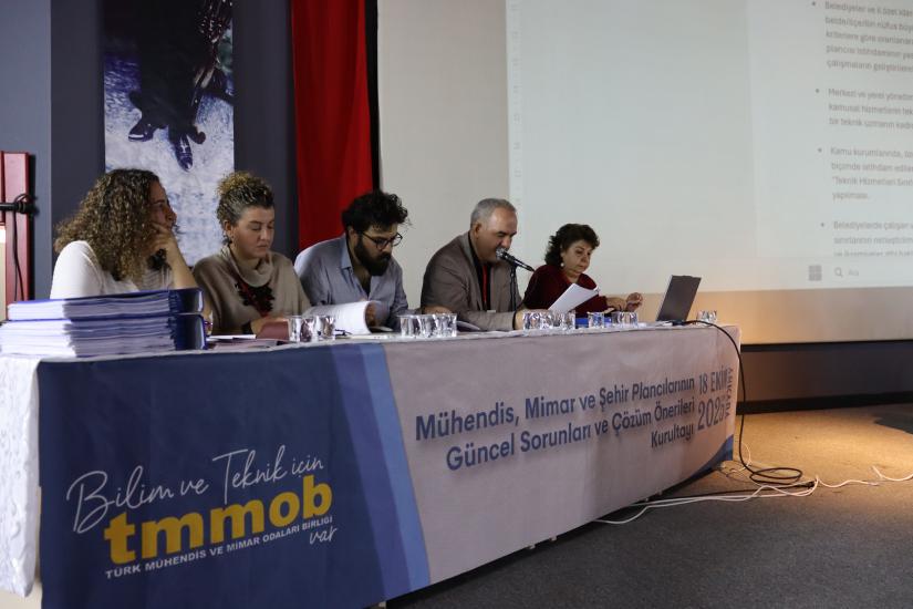 “TMMOB Mühendis, Mimar ve Şehir Plancılarının Güncel Sorunları ve Çözüm Önerileri Kurultayı”, meslektaşlarımızın çalışma yaşamlarında ve sosyal hayatta uğradıkları hak kayıplarını, değersizleştirmeyi ve mesleklerimizin ülkemiz için önemini gündeme getirmek amacıyla, 18 Ekim 2025’te Ankara’da merkezi olarak gerçekleştirildi.