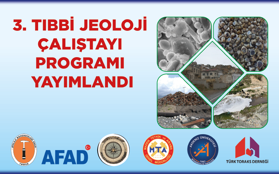 TMMOB Jeoloji Mühendisleri Odası ve Eskişehir Osmangazi Üniversitesi Jeoloji Mühendisliği Bölümü, Tıbbi Jeoloji alanındaki çalışmaları ve iş birliğini teşvik etmek amacıyla; Afet ve Acil Durum Yönetimi Başkanlığı, Maden Tetkik ve Arama Genel Müdürlüğü, İLBANK Planlama ve Koordinasyon Dairesi Başkanlığı ve Türk Toraks Derneği’nin paydaşlığı ile 21-23 Kasım 2025 tarihleri arasında düzenlenecek olan “SAĞLIKLI KENTLER İÇİN TIBBİ JEOLOJİ“ başlıklı 3. Tıbbi Jeoloji Çalıştayı programı yayımlandı.