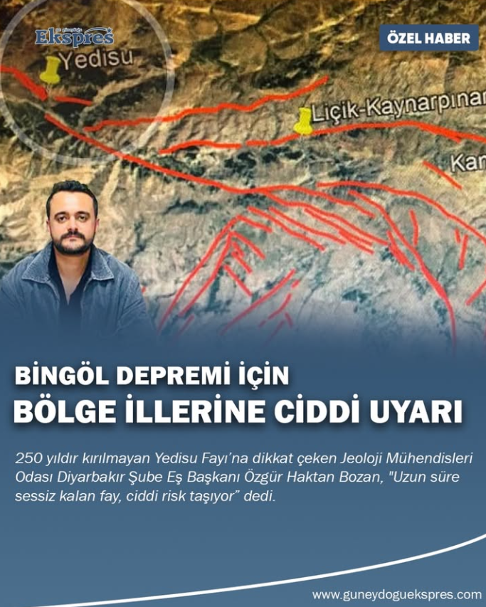 Yedisu Fayı’nın yaklaşık 250 yıldır kırılmadığı düşünülmektedir. Bu da ciddi bir deprem potansiyeli taşıdığı anlamına gelir.