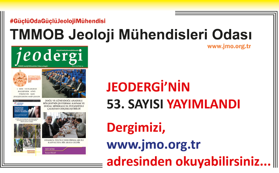 JeoDergi’nin 53. sayısında sizlerle yeniden buluşmaktan mutluluk duyuyoruz. Bu ayki sayımızda, mesleğimize, bilime ve topluma katkı sunan birçok önemli çalışmayı bir araya getirdik.