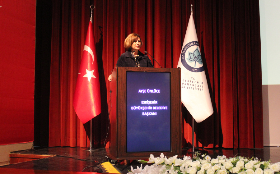 Çolak’ın ardından Eskişehir Büyükşehir Belediye başkanı Ayşe Ünlüce bir konuşma yaptı. Eskişehir Büyükşehir Belediyesi Başkanlığı olarak yaptıkları çalışmalarda akademik odalarla iş birliği yaptıklarını, protokoller imzaladıklarını belirten Ünlüce, tıbbi jeoloji konusundaki çalışmaların ülkemizde geç ele alındığını söyledi. Pek çok ülkede 1950’lerden itibaren risk haritaları oluşturulduğunu ve kentlerin bunlara göre şekillendiğini ifade eden Ünlüce bu nedenle 3. sü düzenlenen Tıbbi Jeoloji çalıştayının kentimize ve ülkemize önemli katkılar sağlayacağını kaydetti.