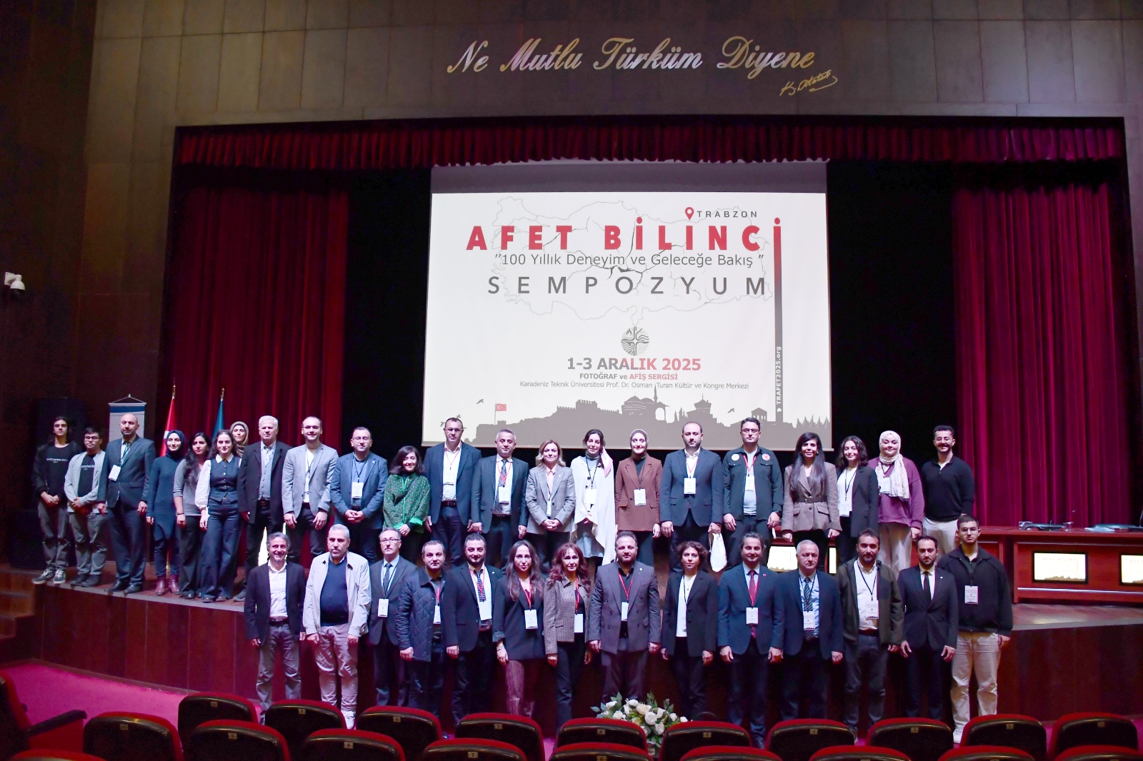Karadeniz Teknik Üniversitesi Prof. Dr. Osman Turan Kültür ve Kongre Merkezi’nde 1–3 Aralık 2025 tarihleri arasında TMMOB’ye bağlı Jeoloji Mühendisleri Odası, İnşaat Mühendisleri Odası, Harita Mühendisleri Odası, Mimarlar Odası, Şehir Plancıları Odası Trabzon Şubeleri, Trabzon Tabip Odası, Trabzon İl Sağlık Müdürlüğü, Trabzon İl Afet ve Acil Durum Müdürlüğü, Trabzon Barosu, Karadeniz Teknik Üniversitesi Heyelan Uygulama ve Araştırma Merkezi, Karadeniz Teknik Üniversitesi Deprem ve Yapı Sağlığı Uygulama ve Araştırma Merkezi, Karadeniz Teknik Üniversitesi Sağlık Bilimleri Enstitüsü ve Trabzon Üniversitesi Hukuk Fakültesi iş birliğinde yürütülen “Afet Bilinci: 100 Yıllık Deneyim ve Geleceğe Bakış” Sempozyumu düzenlendi.