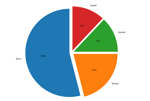 • %13’ü Hizmet Sektöründe meydana gelmiş bulunmaktadır.