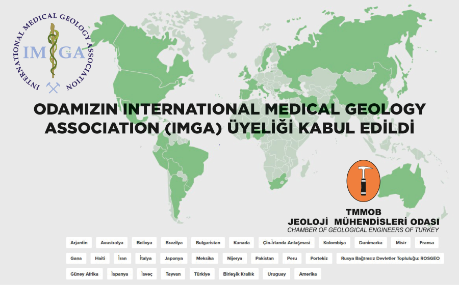 Uluslararası Tıbbi Jeoloji Birliğine(İMGA) üyeliği konusunda yoğun gayret gösteren Odamız Tıbbi Jeoloji Çalışma Gurubuna teşekkür ederiz.