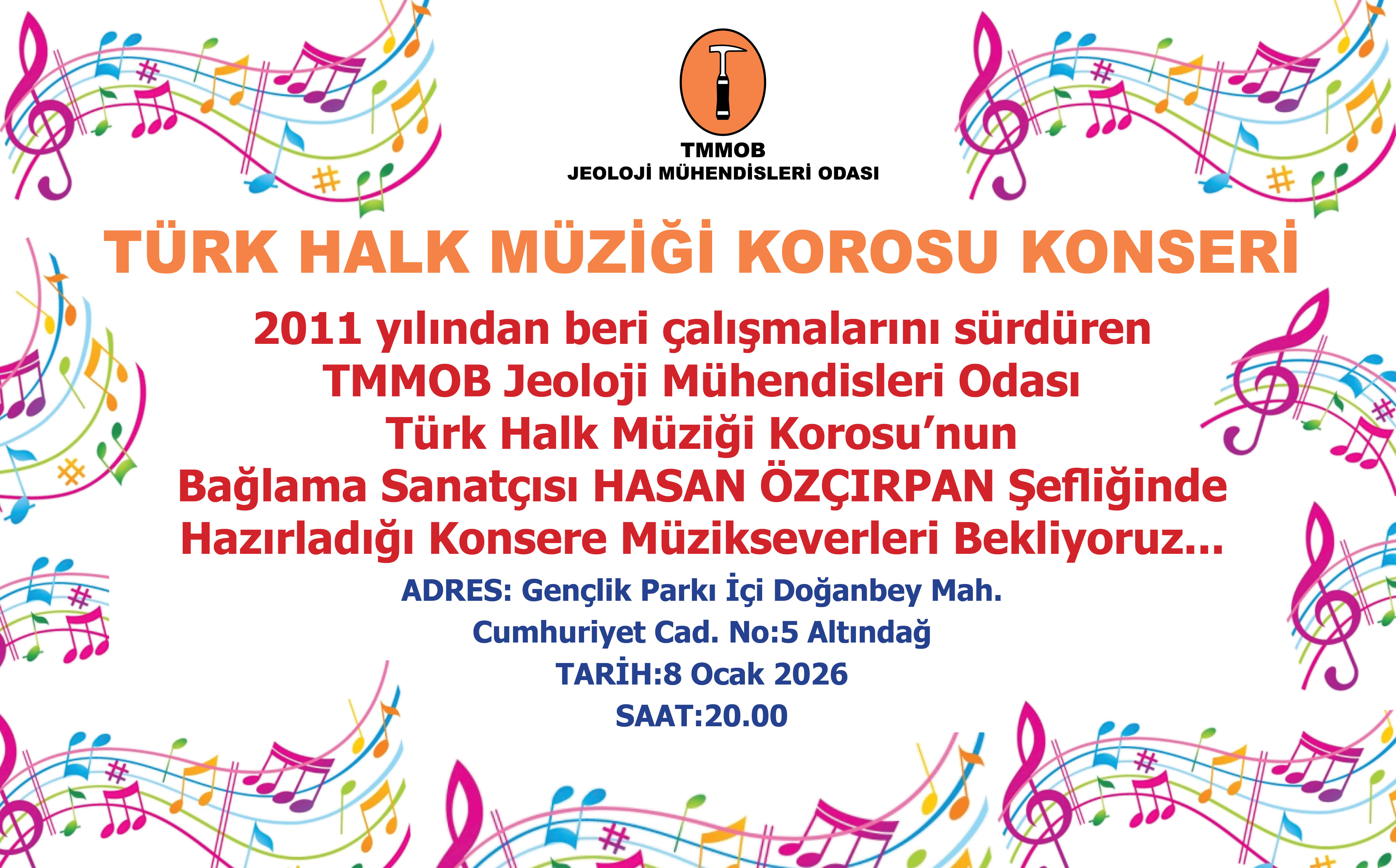 TMMOB JEOLOJİ MÜHENDİSLERİ ODASI TÜRK HALK MÜZİĞİ KOROSU KONSER DÜZENLEYECEKTİR