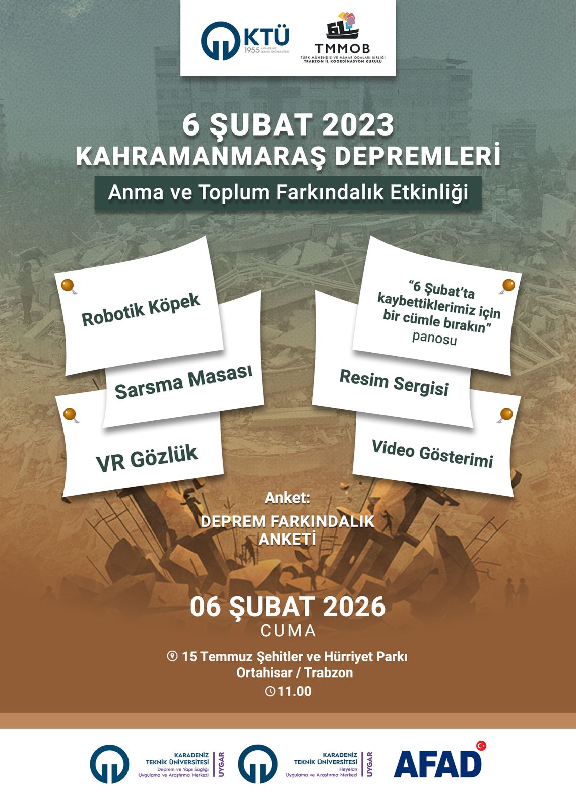 Üzerinden tam 3 yıl geçen Kahramanmaraş merkezli depremlerde hayatını kaybedenleri farkındalık etkinliğimiz ile anıyoruz.