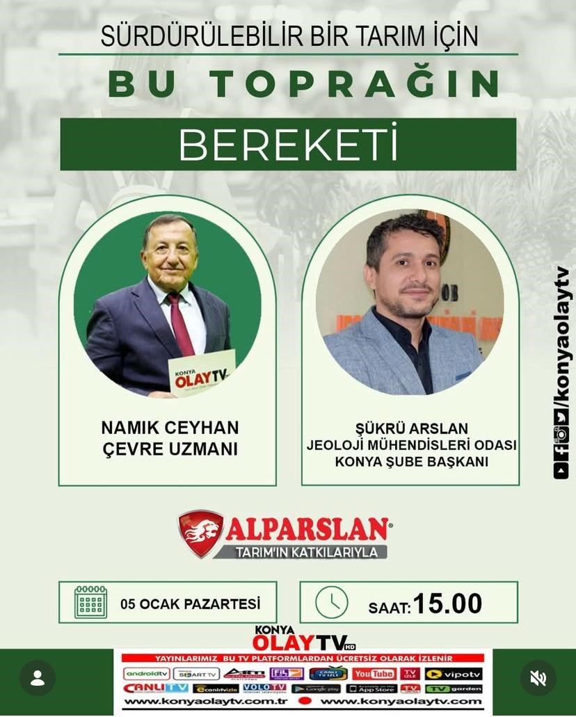 Şube Başkanımız Şükrü Arslan ın Konya’da yaşanan kuraklık, oluşan obruklar bunun sonucu tarımda yaşanan sıkıntılar ile ilgili Olay TV Namık Ceyhan ın programına konuk oldu.