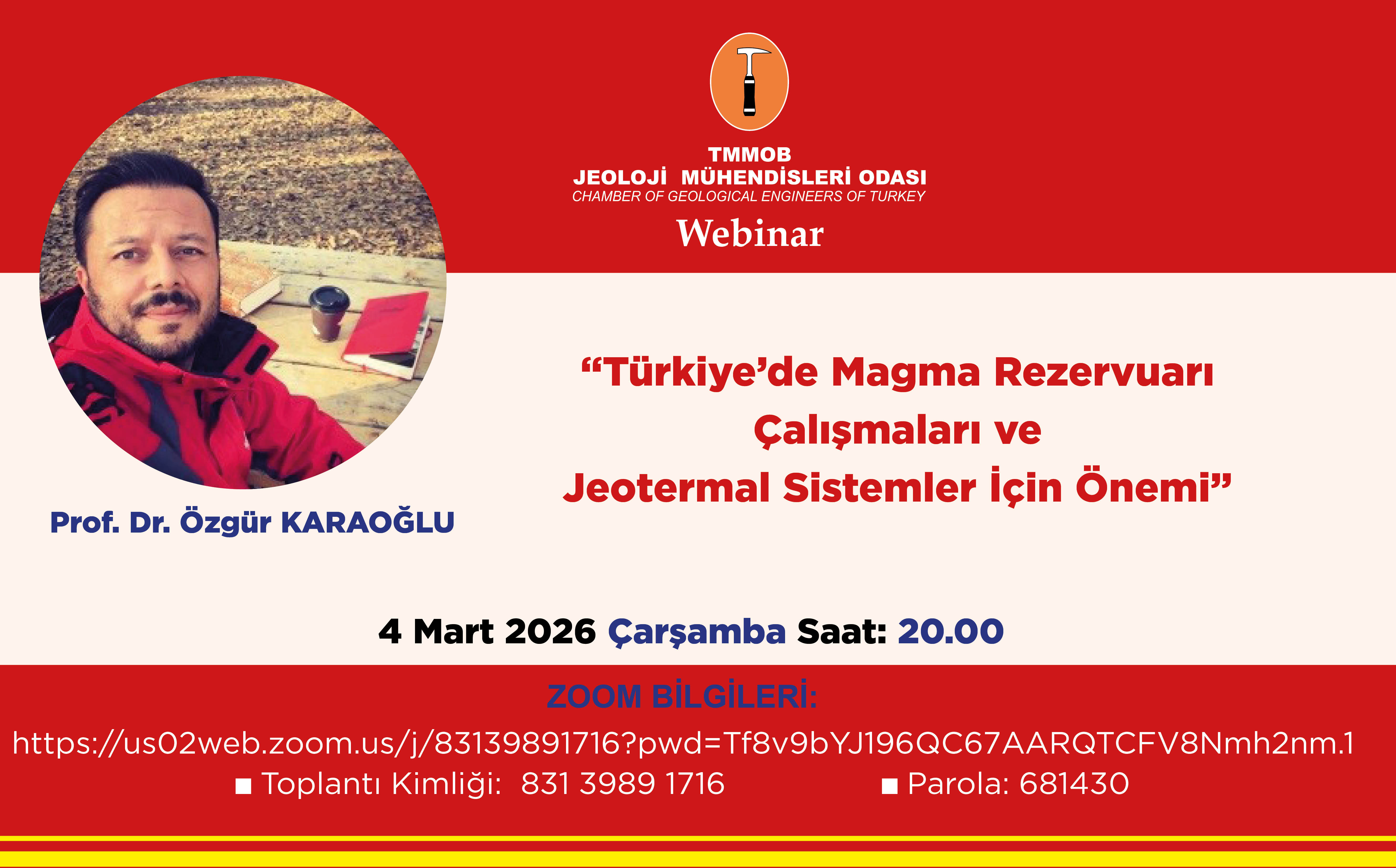 WEBİNAR :“TÜRKİYE’DE MAGMA REZERVUARI ÇALIŞMALARI VE JEOTERMAL SİSTEMLER İÇİN ÖNEMİ”