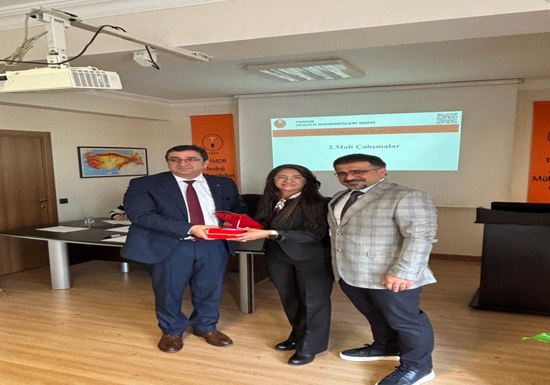 TMMOB Jeoloji Mühendisleri Odası Başkanı Hüseyin Alan ve Yönetim Kurulu Üyesi Ayşegül Karaaslan’a,