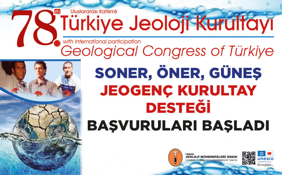 Ankara’da düzenlenecek olan 78. Türkiye Jeoloji Kurultayına katılacak olan genç meslektaşlarımıza daha iyi bir gelecek ve nükleersiz bir yaşam mücadelesinde yitirdiğimiz Odamız JeoGenç Üyesi Soner, Öner ve Güneş`in anısına; kurultaya katılım desteği sağlanacaktır. “Soner, Öner ve Güneş Jeogenç Kurultay Desteği” kapsamında Ankara dışından katılacak olan Jeoloji Mühendisliği Bölümü 5 Lisans Öğrencisi, 5 Yüksek Lisans Öğrencisi ve 5 Doktora Öğrencisine ekonomik destek verilecektir. Ekonomik geliri olmayan ve 78. Türkiye Jeoloji Kurultayına bildiri sunanlar öncelikli olmak üzere kişi başı 6000 TL maddi destek sağlanacaktır.