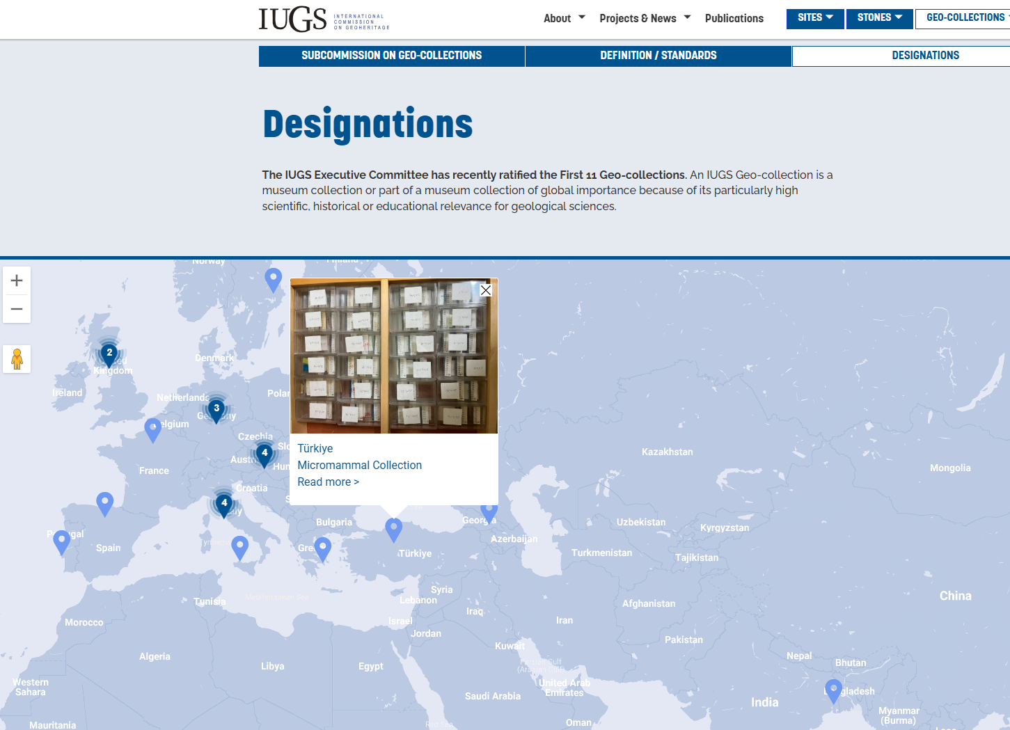 Türkiye’nin jeolojik mirası adına önemli bir uluslararası başarıya imza atıldı. Uluslararası Jeoloji Bilimleri Birliği (IUGS)  tarafından yürütülen “Geo-Collection” programı kapsamında, MTA Genel Müdürlüğü bünyesinde yer alan MTA Şehit Cuma Dağ Tabiat Tarihi Müzesi Mikro Memeli Fosil Koleksiyonu, dünya çapında öneme sahip bir jeolojik koleksiyon olarak tescil edildi. ( Habere buradan ulaşabilirsiniz.)