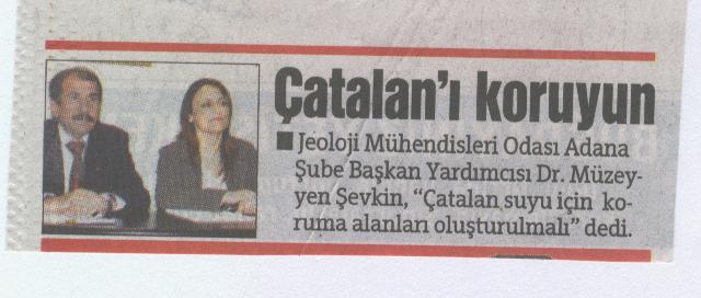 22 Mart Dünya Su Günü ile ilgili olarak Jeoloji Mühendisleri ve İnşaat Mühendisleri Odaları Adana Şubelerinin ortaklaşa düzenledikleri etkinliklerde "İçme Suyu Havzalarının Korunması ve Çatalan Havzası" örneği ile ilgili konferans düzenlenmiş ve basın açıklaması yapılmıştır.