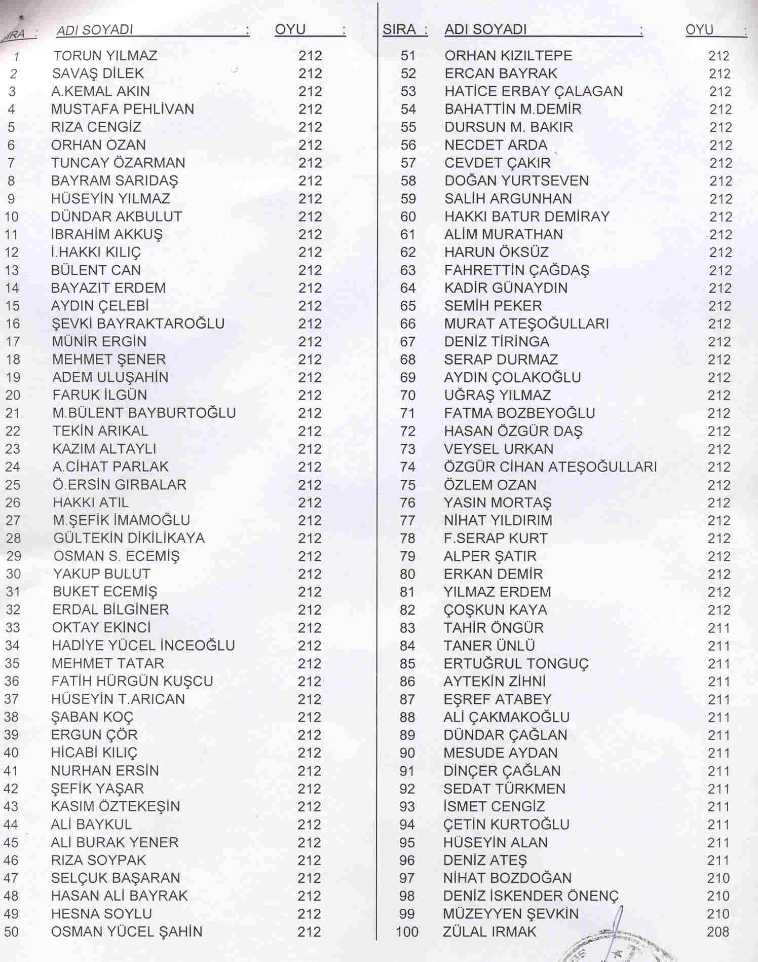 3-HASAN ALİ BAYRAK  212                                3-ÖNDER AYDOĞDU      180