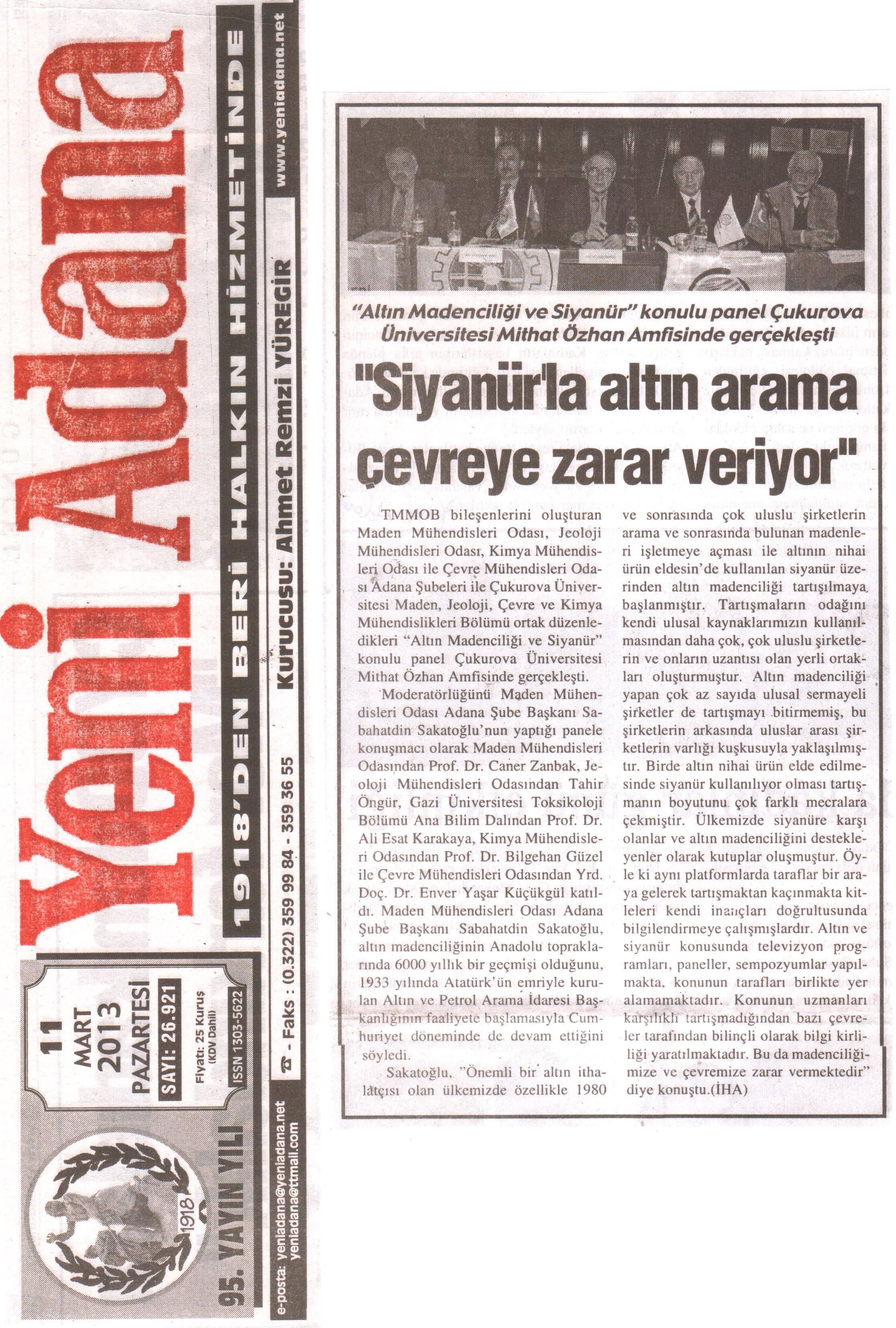 Şubemiz, Maden Mühendisleri, Çevre Mühendisleri ve Kimya Mühendisleri odaları Adana şubelerinin birlikte düzenlediği "Altın Madenciliği ve Siyanür" konulu panel 7 Mart perşembe günü Çukurova Üniversitesi Mithat Özsan amfisinde yapıldı.