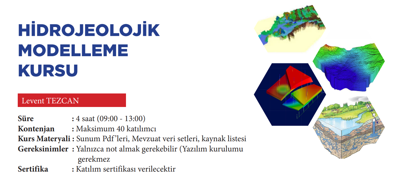 Yeraltısuyu kaynaklarınınsürdürülebilir yönetimi, kirliliğin önlenmesi ve iklim değişikliğine adaptasyonstratejilerinin geliştirilmesinde hidrojeolojik modelleme kritik bir roloynamaktadır. Bu kurs, hidrojeolojik modelleme konusunda deneyimi olmayan jeolojive hidrojeoloji mühendislerine temel bilgi ve beceriler kazandırmayıamaçlamaktadır. Katılımcılar, bu kurs sonunda hidrojeolojik modellemeprojelerinde görev alabilecek, model sonuçlarını anlayarak yorumlayabilecek vekendi çalışma alanlarında modelleme ihtiyacını değerlendirebilecek okuryazarlık seviyesine ulaşacaktır.